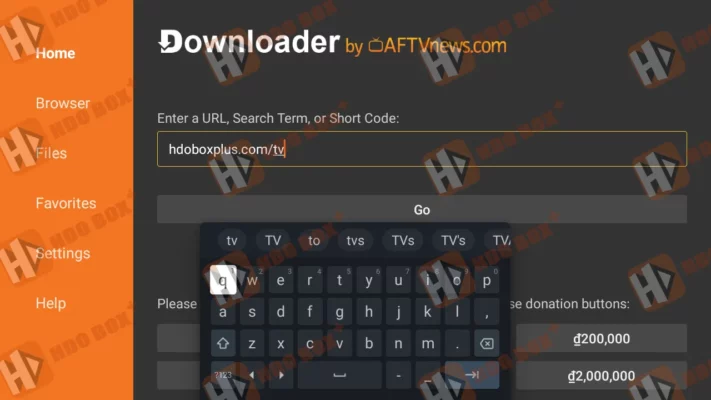 3. Type the following URL exactly as it is listed here – hdoboxplus.com/tv and click Go.
